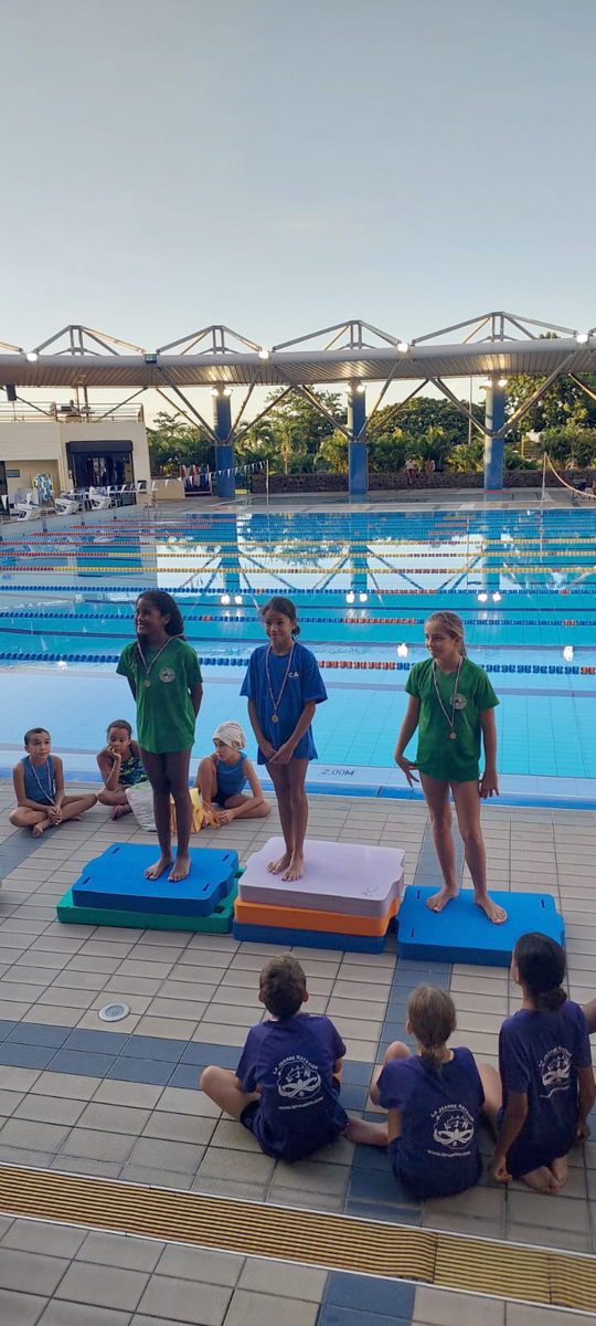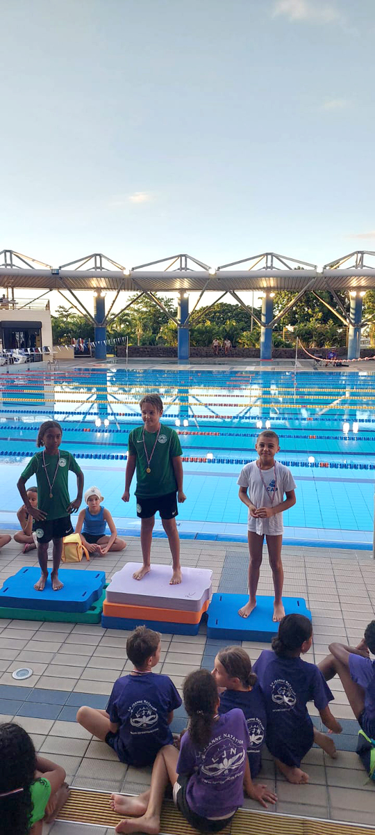 Le Club Aquatique de La Possession รฉtait au rendez-vous โ et on ne pouvait pas le rater ! Cris de guerre puissants pour lancer la compรฉtition, รฉnergie dรฉbordante, et une ambiance au top tout au long de la journรฉe.
